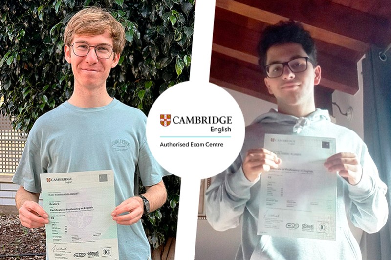 En Pau (de Castelló) i en Joel (de Lleida) han rebut ara el certificat d’anglès C2 que van aconseguir en aprovar la convocatòria de l’Examen Oficial C2 Proficiency - celebrada el passat mes de juliol.
